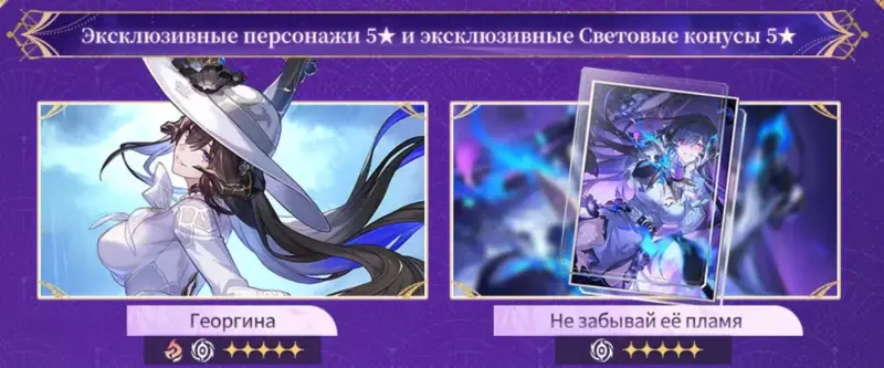 - 5-звездочные персонажи (повышенный шанс выпадения): Георгина (Небытие: Огненный)