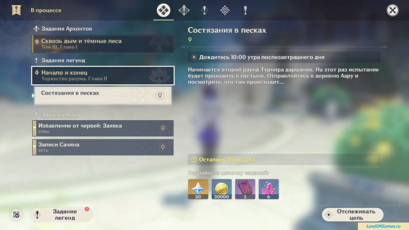 Вам предстоит расследовать истинную подоплеку происходящих событий, отыскав сначала матру, а потом аль-Хайтама. Вы сможете также посетить дом секретаря Академии. Подробное прохождение задания представлено в нашем отдельном гайде.