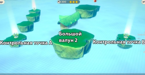 Разместите один большой валун между стартовой точкой и контрольной точкой «А». Его также можно установить между уже имеющейся на карте гостиницей, если вы планируете использовать более продолжительный маршрут. Что касается высоты, то поставьте островок так, чтобы вы смогли запрыгнуть на него, а потом спланировать вниз и долететь до «А».