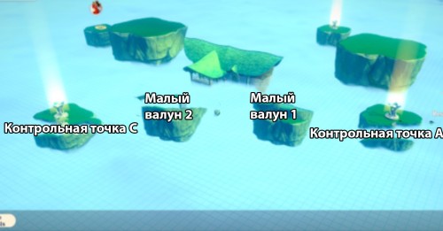 Пустая область между контрольными точками «В» и «С» очень большая, поэтому мы советуем поставить здесь прыгучий гриб. Главное не ставьте его слишком далеко от контрольной точки «В», иначе вы попросту не допрыгните до него.