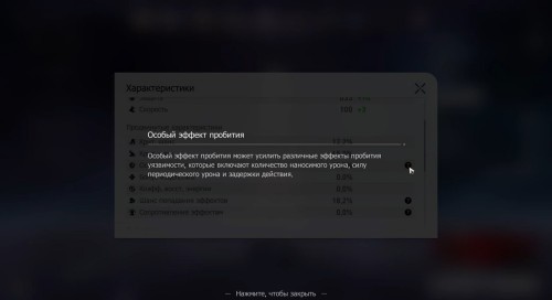 В характеристиках своего персонажа вы сможете найти такой пункт как «Особый эффект пробития».