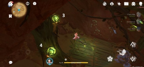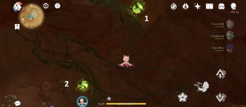 Здесь вам предстоит взаимодействовать с 3 духами лозы в определенном порядке – он указан на стене, рядом с ядром духа.