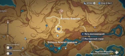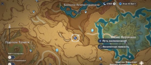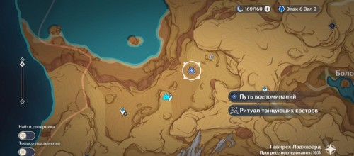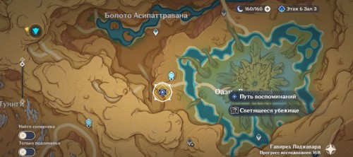 Это испытание расположено к юго-западу от Статуи Дендро Архонта в оазисе.