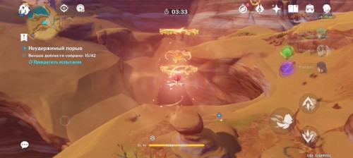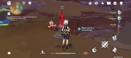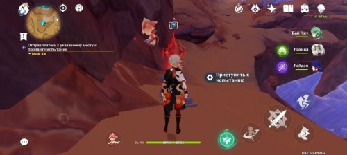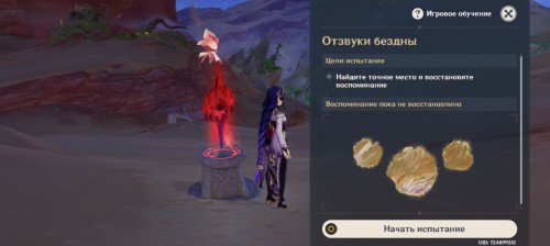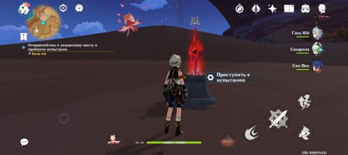 Начав испытание, вы можете использовать Наблюдение, чтобы узнать свойства предметов и хиличурлов.