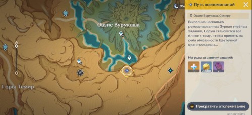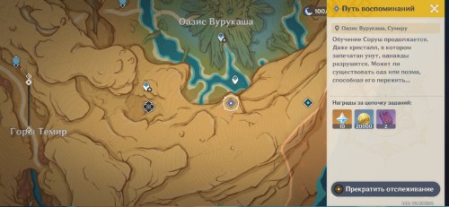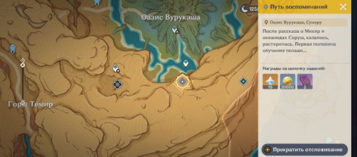 Теперь вам необходимо отправиться в горы Темир. У Статуи Дендро Архонта повернитесь на юг, затем доберитесь до испытания по четырехлистным символам.