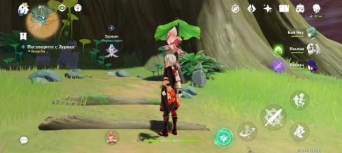 Зажгите оба костра, чтобы привлечь группки хиличурлов. Сожгите лозу посередине, после чего сбросьте ниродха на цветок гнева и прогоните оставшихся мобов.