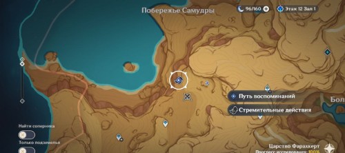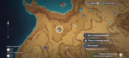 Летите вправо, в сторону хижины хиличурлов. Картинку сместите вверх и влево.