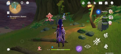 Летите к развилке и отправляйтесь на правую дорогу. Прогоните двух мобов с помощью Электро бочки. Сожгите лозу и выстрелите в двух бегающих хиличурлов – не забывайте бросать ниродха немного заранее.