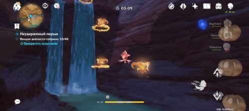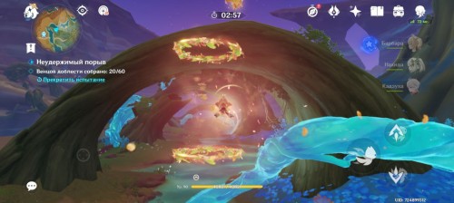 Поверните направо и пролетите до конца, взорвите еще Электро бочку рядом с одиноким хиличурлом.