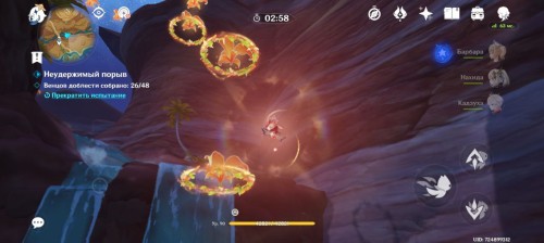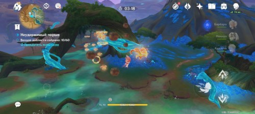 Сначала пролетите немного вперед и изгоните 4 хиличурлов, сбросив фрукты на 2 Электро бочки.