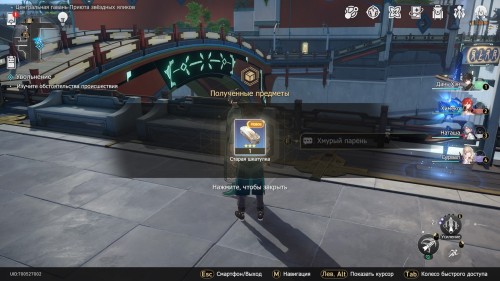 Переместитесь к пространственному якорю «Авеню Звездочетов» в Центральной гавани Приюта звездных яликов (данная локация откроется при прохождении миссии освоения «Небесное странствие на звездном плоту»), а затем приблизьтесь к магазину «Пагода ювелира» (здесь можно обменивать стрелы на полезные вещички) и поболтайте с Ханьдянем.