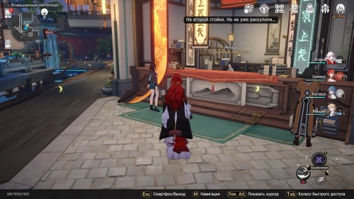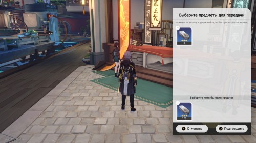 Телепортируйтесь к якорю «Двор спокойствия» в Возвышающемся святилище, а потом пройдите на северо-восток, чтобы отыскать торговую лавку под названием «Три поры досуга». Подойдя к магазину, послушайте небольшой диалог между Иньшу и Печальной женщиной.