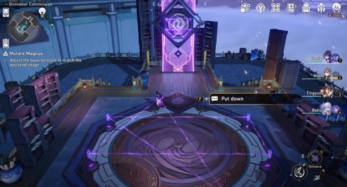 Пройдя пазл, вы автоматически вернетесь в Зал совещаний, где вас будет ждать награда. Снова пообщайтесь с Хуэйсин для перемещения к другому терминалу. Напомним, что для решения головоломки вам нужно перетаскивать кристаллы, чтобы получить на земле такую же фигуру, как показывают на верхней площадке.