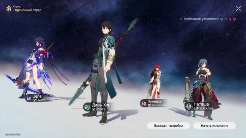 Дань Хэн (замена DPS) | Многие противники в этом испытании уязвимы к ветряному урону, поэтому его можно использовать как второстепенного дамагера. |