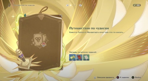 Первым делом вам нужно будет пройти квест «Дуэль начинается! Первые подозрения»», позволяющий получить доступ ко всем испытаниям главного ивента. Далее необходимо взяться за выполнение миссии «Путешествие по чудесам». Вам предстоит просто поговорить с Оннеей в Мондштадте. В награду за выполнение задания вы получите 4 опыта искателя приключений, 4 опыта странника и 50 купонов призыва.