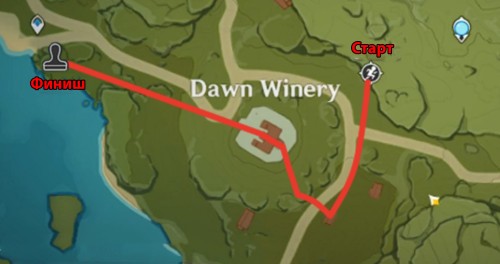 Стартовая точка расположена неподалеку от Статуи семи Архонтов, к востоку от винокурни, а печать можно отыскать возле телепортационной точки к западу от построек. Вам нужно будет выполнить основные задачи испытания менее чем за 2 минуты.