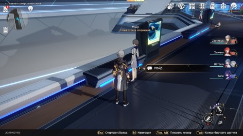 В этой же локации переместитесь к якорю «Зона наблюдения», а затем пройдите налево и отыщите девушку по имени Мэйр, которая является руководительницей нужного вам отдела. Вступите с ней в диалог и выберите вариант про записку (отмечен знаком вопроса).