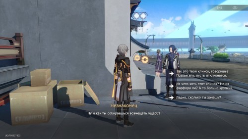 Затем вступите в диалог с Цзинъянь, стоящей неподалеку, и скажите ей, что вас надул мошенник (ответ со знаком вопроса). Далее во время разговора выберите ответ «Нисколько»