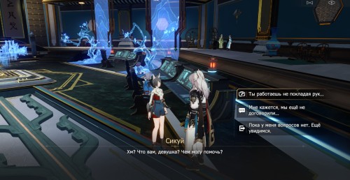 После этого подойдите к Сикуй, стоящей недалеко от входа во дворец. Начните с ней диалог. Во время разговора вам необходимо выбрать реплику «Ты работаешь не покладая рук…»