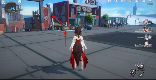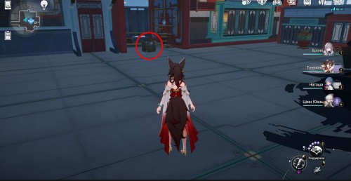 Вернитесь к пространственному якорю Кладезь зелени. На сей раз повернитесь в юго-западном направлении. Вы найдете сундук на крыше кафе, куда необходимо подняться по лестнице.