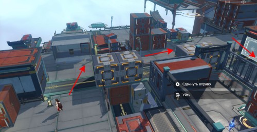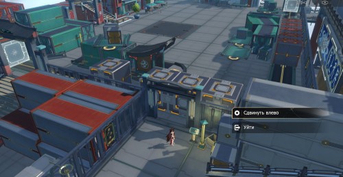 Если вдруг у вас закрыт проход, ведущий в нужную сторону, то поверните в соседний проход к пространственному якорю. От него пройдите на соседнюю площадку в южном направлении. Воспользуйтесь контроллером, чтобы сдвинуть мешающие контейнеры влево. Теперь путь для вас открыт.