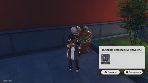 Отправляйтесь в отмеченную область и отыщите там алебарду, прислоненную к стене. Взаимодействуйте с ней, а затем пообщайтесь с незнакомцем. Можете дать ему деньги или запугать. Затем поговорите с Цзинъянь из канцелярии Комиссии по балансу и назовите сумму забранных у вас кредитов. От ваших ответов будет зависеть, какое достижение вы откроете: «Чужого не нужно», «Бюро находок» или «Жадность не порок». В отдельном руководстве мы подробно рассмотрели этот мини-квест.
