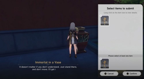 Теперь дождитесь наступления следующего календарного дня и возвратитесь к вазе. Взаимодействуйте с ней и поговорите с Бессмертным. На этот раз он попросит вас отдать ему одну Похвалу высокой морали. Передав ее, вы получите второе вознаграждение. При этом незнакомец предложит вам дополнительный приз, что ведет к двум концовкам: