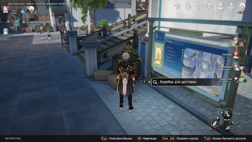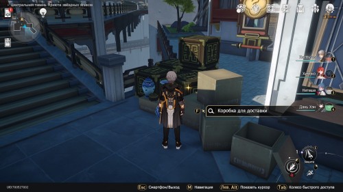 Переместитесь к пространственному якорю «Авеню Звездочетов», а затем развернитесь и пройдите немного на юго-запад. Возле рекламной доски вы увидите коробку для доставки – взаимодействуйте с ней.