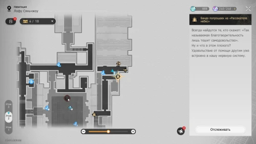 Отправляйтесь на первый этаж указанной локации к якорю «Инкубатор» и взаимодействуйте с ящиками. Затем помогите Всезнайке водрузить унитаз на вершину коробок и поместите его на «трон». В результате вы получите 1 похвалу высокой морали. Подробнее об этом мы рассказали в отдельном гайде.