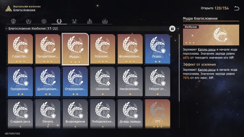 Впрочем, Изобилие может и значительно повысить урон ваших персонажей благодаря механике «Капля росы». Размер наносимых повреждений в основном будет зависеть от максимального HP героев, который будет непроблематично повысить при помощи одного из благословений пути. Вот список всех наиболее полезных бонусов: