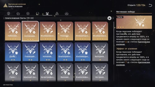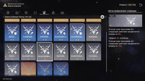 При этом следует учесть, что хоть вам и будут чаще выпадать благословения пути Охоты, однако их дроп все же носит случайный характер. Поэтому если вы не видите нужных бонусов, то берите баффы на повышение урона из других путей. Естественно, следует учитывать используемых персонажей. Если у вас есть дамагеры с бонус-атаками, то берите побольше благословений Радости, а если с периодическим уроном, то Небытия.