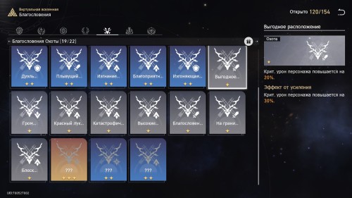Большинство благословений Охоты направлены на увеличение общего урона персонажей за счет повышения их скорости, критического урона и шанса крит. попаданий. В списке ниже указаны наиболее интересные баффы: