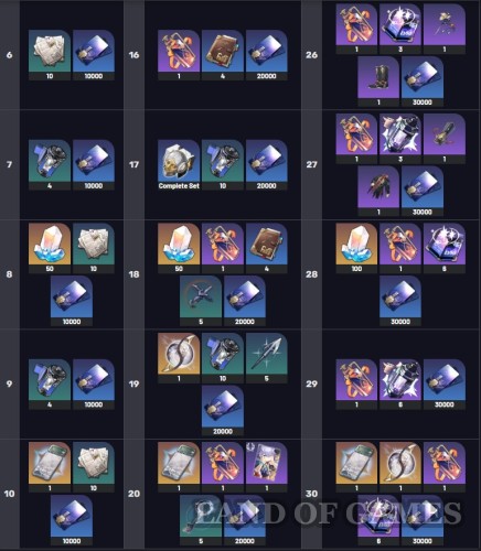 Персонажей и световые конусы можно прокачать до 40-го уровня. Количество очков техники повышается до 4-х. Открывается доступ к багровым чашелистам. Каждое поручение Ежедневной тренировки приносит 230 опыта освоения. |