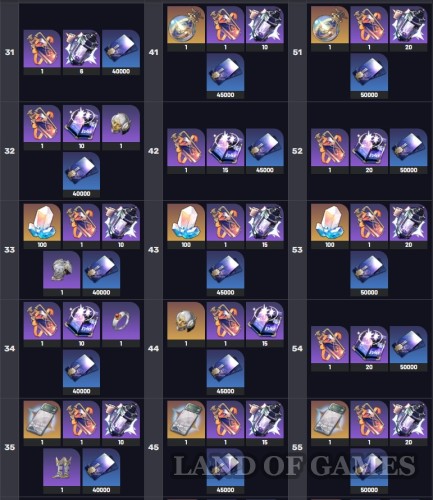 - Топливо х1 – выдается в качестве награды за получение нового уровня Освоения.