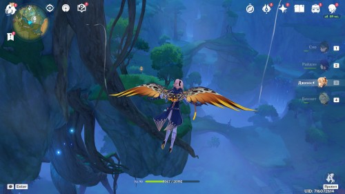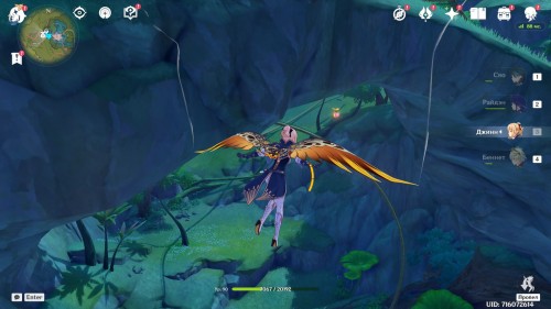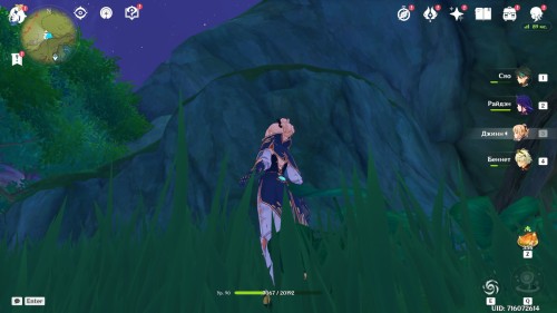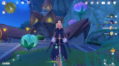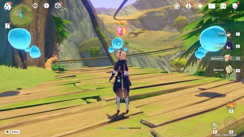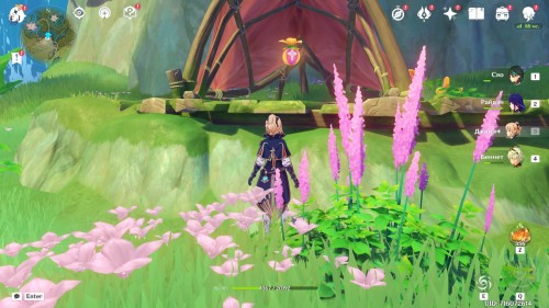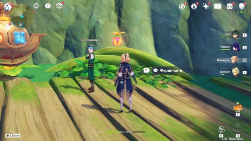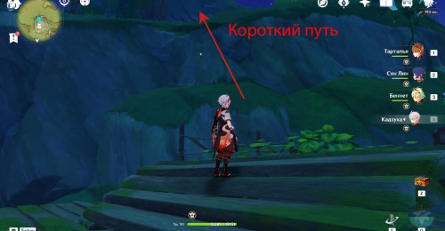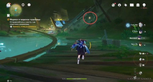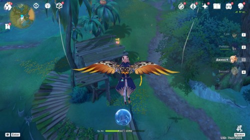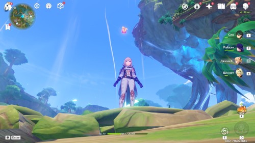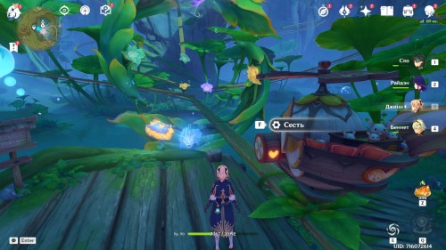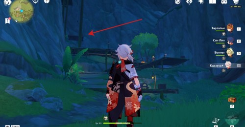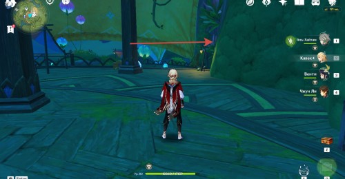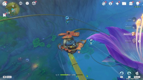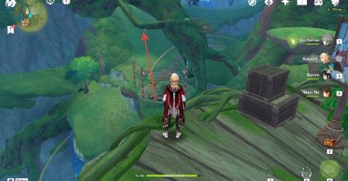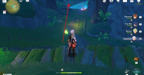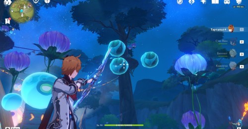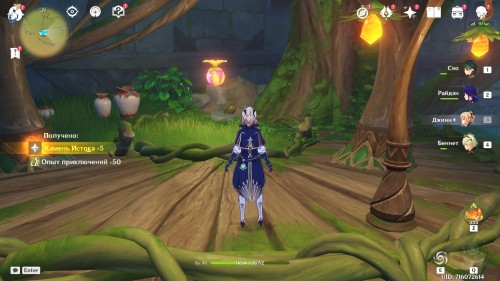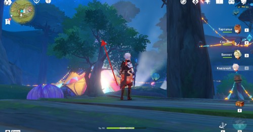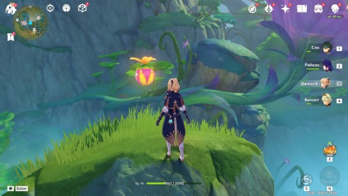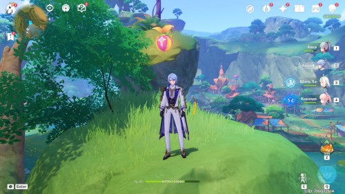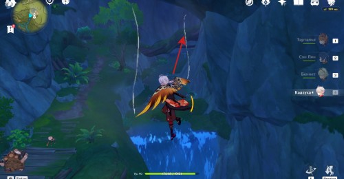 Пройдите к небольшой кольцевой развязке, расположенной в западной части городка и взаимодействуйте со стоящей неподалеку Капелькой. Она создаст клевер, на который нужно воздействовать Анемо атакой для создания воздушного потока, с помощью которого вы сможете добраться до мешочка, висящего наверху.