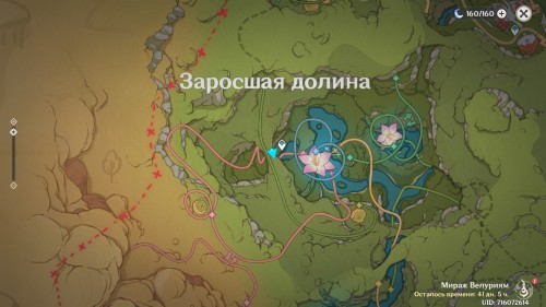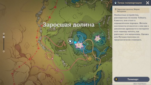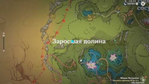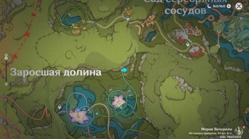 Находится в северо-восточной части Заросшей долины, на одной из остановок для таратайки. После прохождения цепочки «Приглашение издалека!» переместитесь к телепорту на западе локации и пройдите к развилке рельсовых путей, показанной на картинках ниже. Затем выберите бирюзовый цветок.