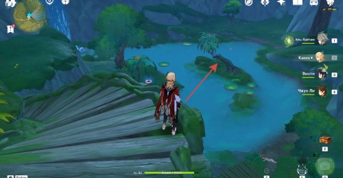 Вы найдете его на вершине утеса, обвитого виноградной лозой. Взаимодействуйте с Гидро эйдолоном, находящимся неподалеку для создания пружинистого гриба. Прыгните на него, дабы взобраться на выступ.