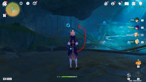 Взаимодействуйте с подозрительным грибом, растущим из пола, и вы обнаружите Гидро эйдолона, который уберет пузырь, и вы сможете забрать ларец.