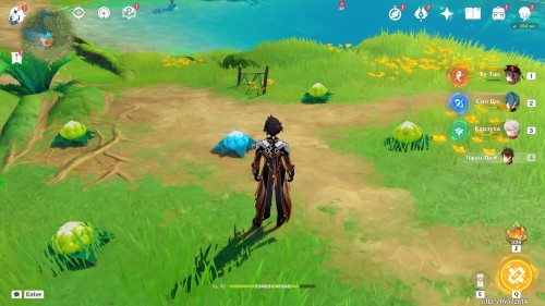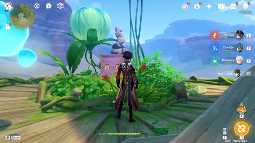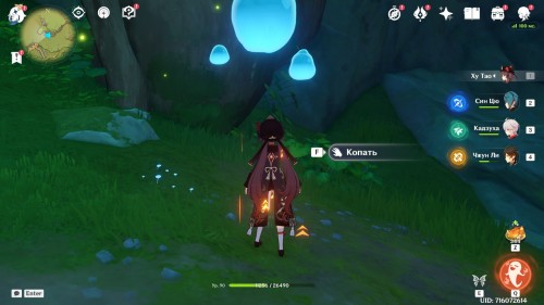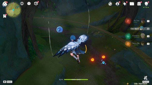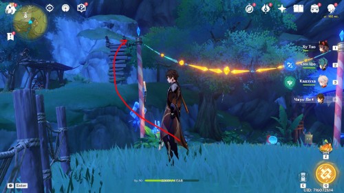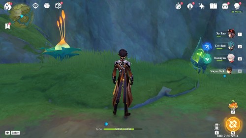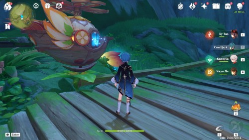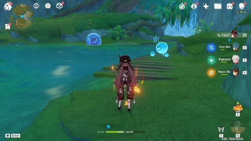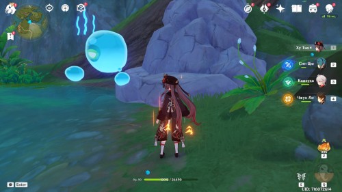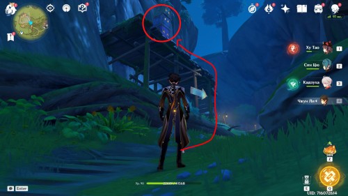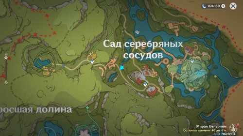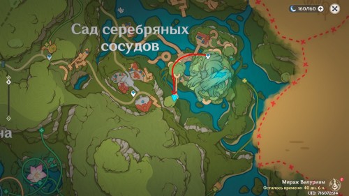 Сядьте на таратайку, расположенную возле западного телепорта Сада серебряных сосудов, и доберитесь до второй пещеры. В ее середине слезьте с транспорта и разберитесь с группой Пиро слаймов. Спася Гидро эйдолона, последуйте за ним к богатому сундуку.