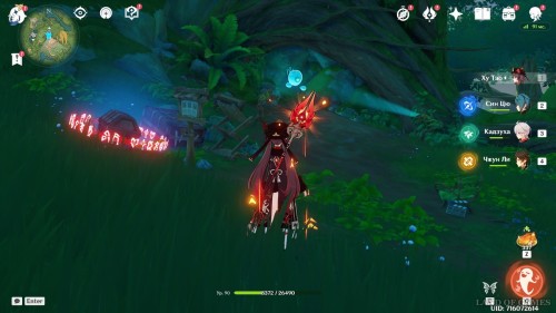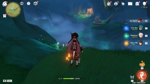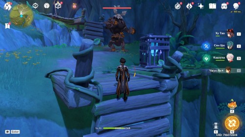 Спрыгните в дыру в главном зале, куда ведут рельсы таратайки. Спустившись, вы обнаружите эйдолона, окруженного хиличурлами. Разберитесь с противниками и последуйте за капелькой к сундуку, разобравшись по пути с монстрами.