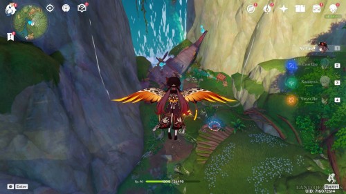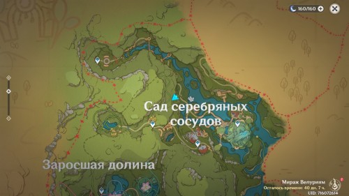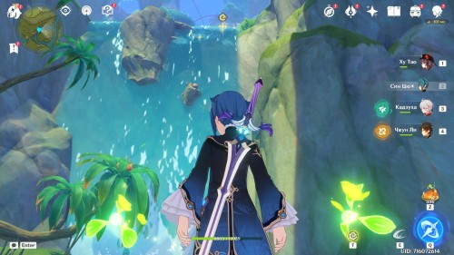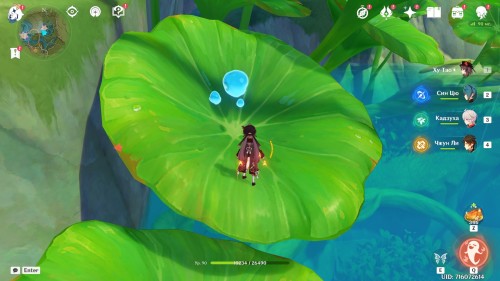 Переместитесь к центральному телепорту в Саду серебряных сосудов, пройдите на восток и спрыгните с края обрыва. Начните планировать на юго-восток к водопадам. Приземлитесь возле водоема и взаимодействуйте с грустным Гидро эйдолоном. Затем последуйте за ним к каменной глыбе и разрушьте ее. Тем самым вы освободите вторую капельку.