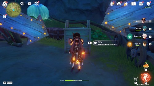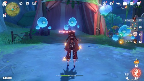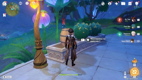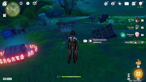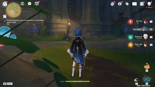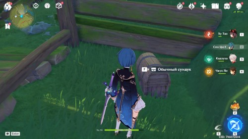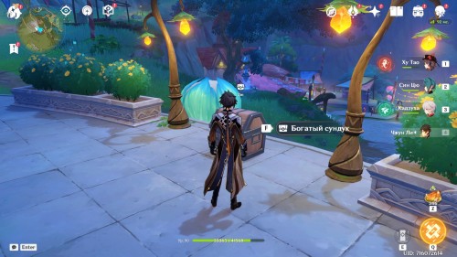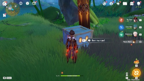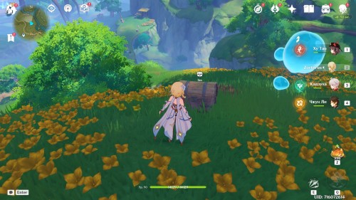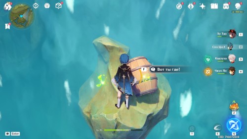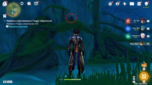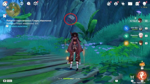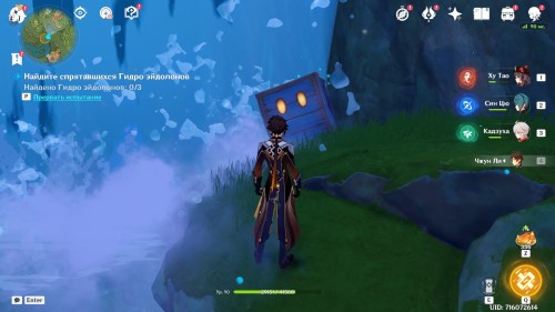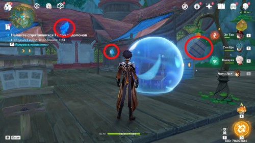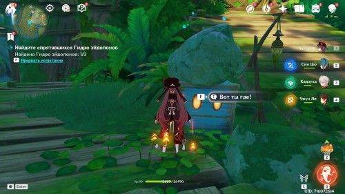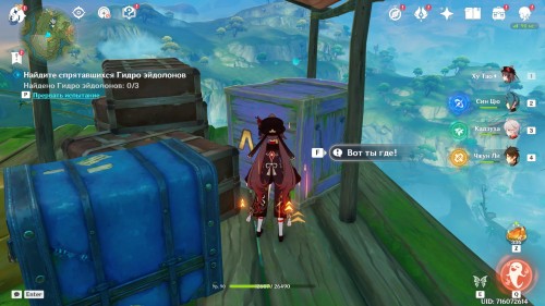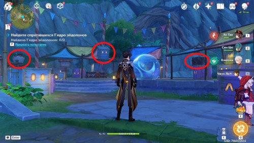 Переместитесь к юго-западному телепорту городка, а потом пройдите немного на север на площадку с табличкой – взаимодействуйте с ней, чтобы сыграть в прятки с Гидро эйдолонами. Вам нужно будет взаимодействовать с вазой, коробкой на тенте и коробкой под тентом. После этого вы сможете забрать содержимое драгоценного сундука.
