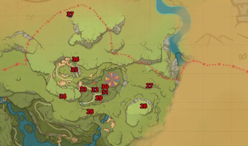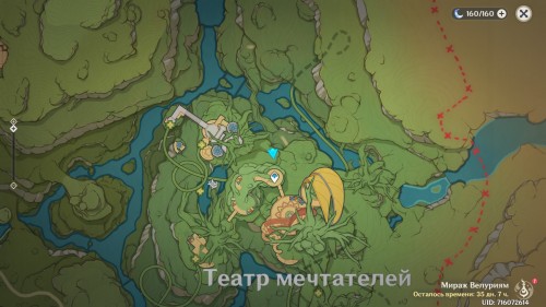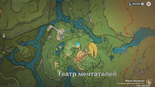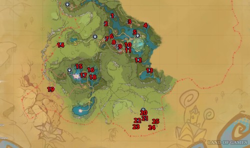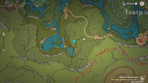 На карте выше показано примерное расположение всех Гидро эйдолонов в Мираже Велуриям. Далее мы в деталях поведаем вам, как их найти и решить все пазлы с ними.