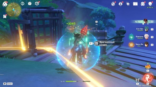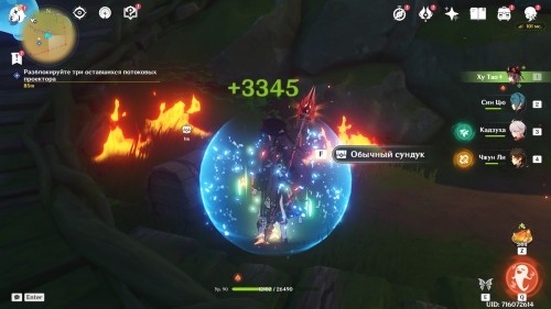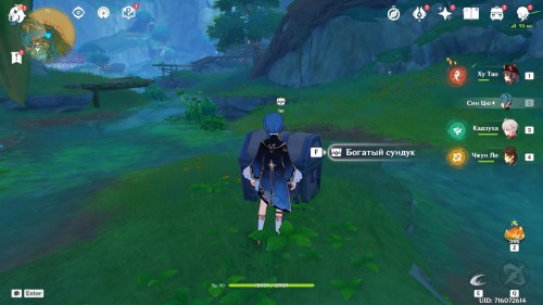 Забрав предыдущее сокровище, продолжайте следовать за эйдолоном, а потом спасите его от хиличурлов и митачурла. В награду вы получите обычный сундук.