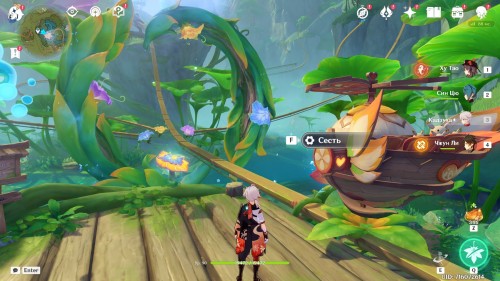 Переместитесь к восточному телепорту городка в Саду серебряных сосудов, а затем спрыгните вниз в юго-восточном направлении. Доберитесь до остановки таратайки, показанной на скриншотах ниже, и сядьте в нее, чтобы доехать до пещеры еще дальше на юге. Здесь начнется квест «Игра света и тени», в рамках которого вы сможете получить доступ к некоторым из Гидро эйдолонов.