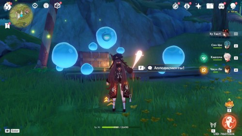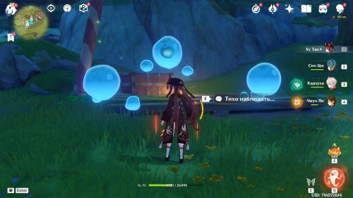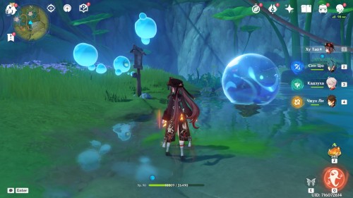 От прошлого шара пройдите еще дальше на юго-восток к водоему и взаимодействуйте здесь с Гидро эйдолоном. Он покажет вам, в какой последовательности нужно активировать Гидро монументы. На всякий случай мы показали необходимый порядок на скриншоте внизу. Если вы все сделали правильно, то возникнет драгоценный сундук.
