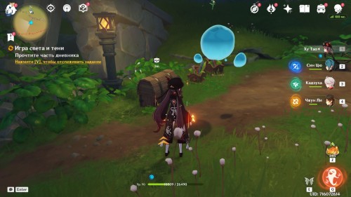 Подойдите к Гидро эйдолону, парящему перед таратайкой, а затем начните следовать за ним до обычного сундука. Рядом находится первая часть дневника, необходимая вам по заданию «Игра света и тени».