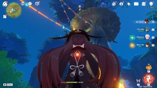 Спрыгните с выступа и спланируйте налево к двум Гидро белкам. Возле них будет четвертая помидорка. Затем спуститесь еще ниже и пройдите на запад. Рядом с деревом вы увидите пятую сферу. Далее идите к четырем эйдолонам, возле которых появится богатый сундук.
