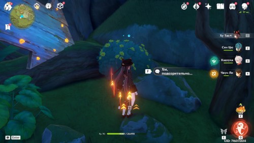 Отправляйтесь в указанную точку. Здесь вы обнаружите замаскированного под ящик эйдолона и двух хиличурлов. Разберитесь с врагами, а потом подойдите к двум капелькам, которые разблокируют для вас обычный сундук.