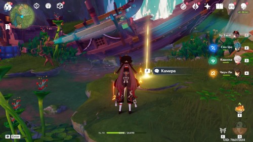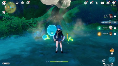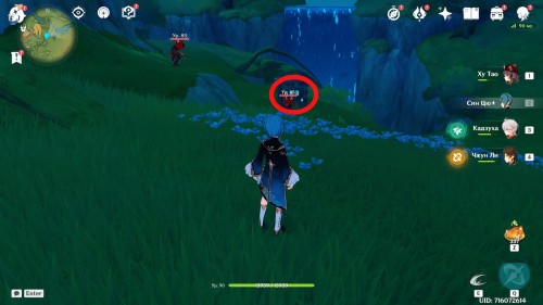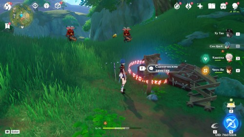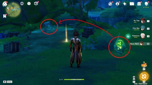 Теперь идите на восток от места проведения съемок, и вы заметите клетку с водяным шаром и двух хиличурлов. Разберитесь с врагами, а потом отоприте решетку. Сопроводите пленника до его товарища.